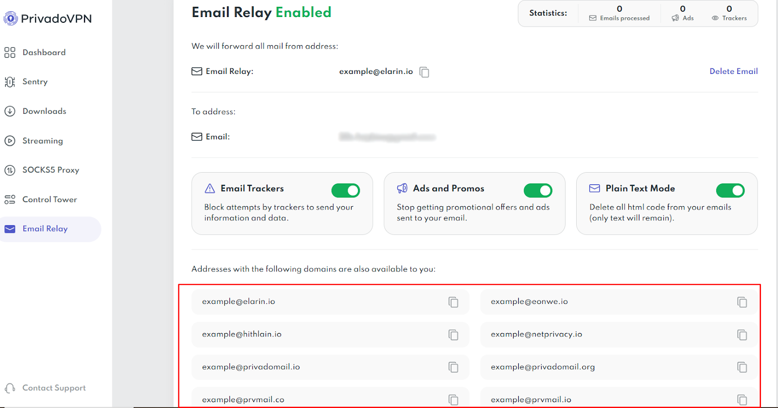If you need to change your forwarding email later, return to Email Relay in your account dashboard and update your settings.