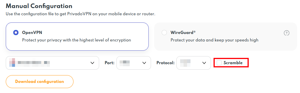 Important: When generating files, make sure the "Scramble" option is disabled, as the default OpenVPN client for Linux does not support it. Otherwise, the VPN will not be able to connect without additional actions.