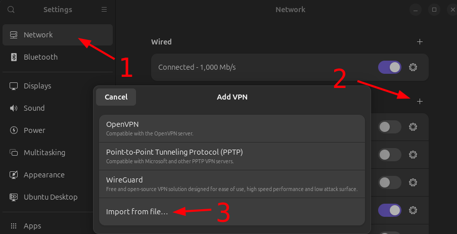 sudo apt install network-manager-openvpn network-manager-openvpn-gnome